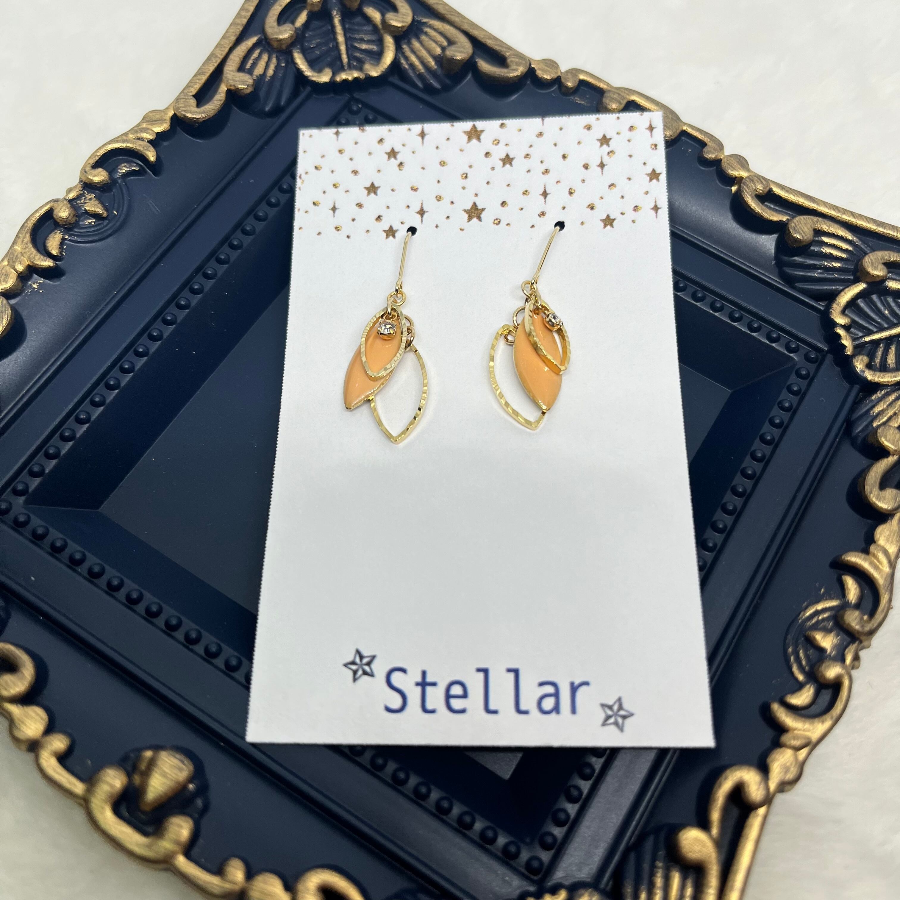 揺れるハンドメイドピアス通販stellarです。小ぶりですが、キレイめで揺れるとキラキラとするピアスです。