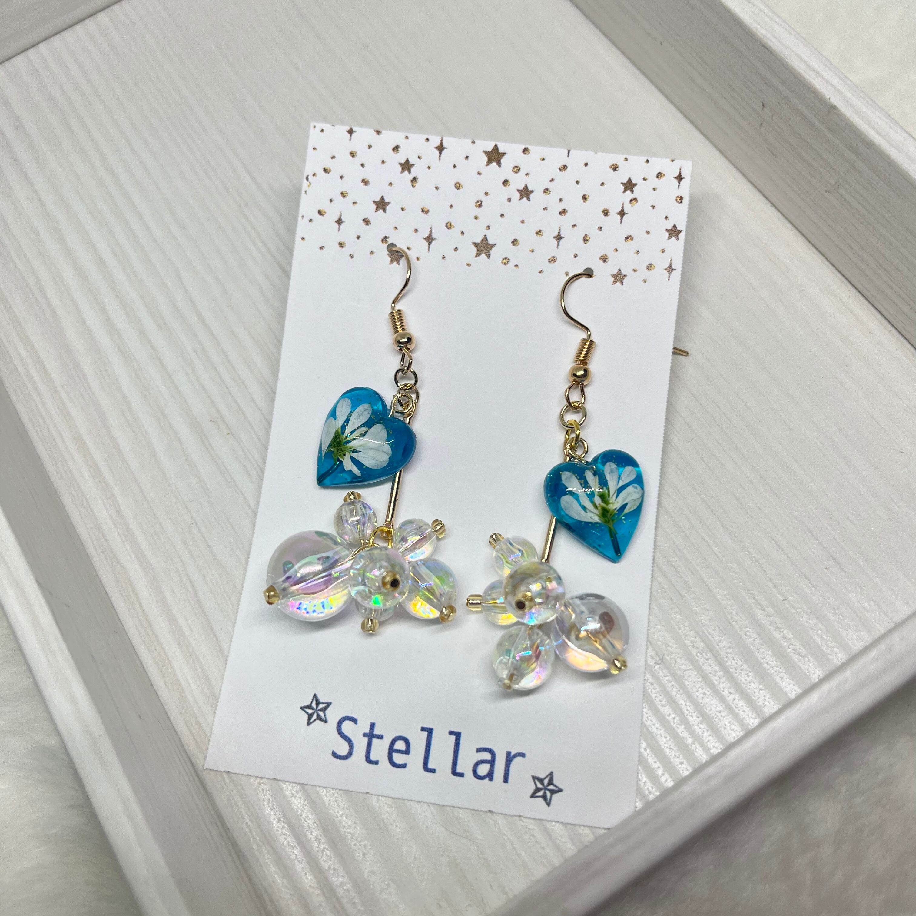 綺麗なレジンで作ったハートのパーツとウルウルビーズを組み合わせて可愛い×綺麗に仕上がりました。