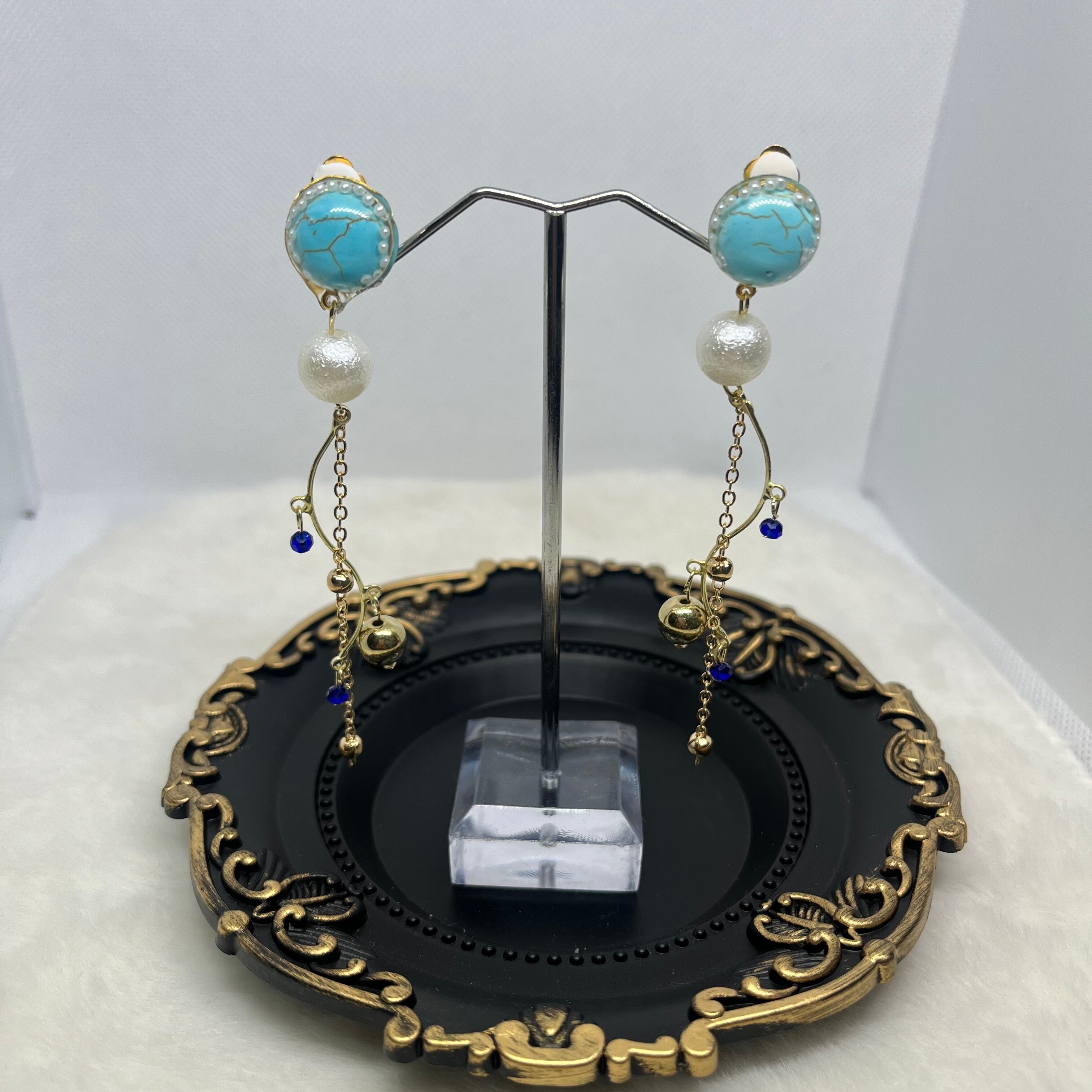 輝くようなターコイズが煌めくロングイヤリング。洋服はもちろん浴衣や着物にも合わせることができます。ロングタイプなので、首元にも華やかさをプラスしてくれます。