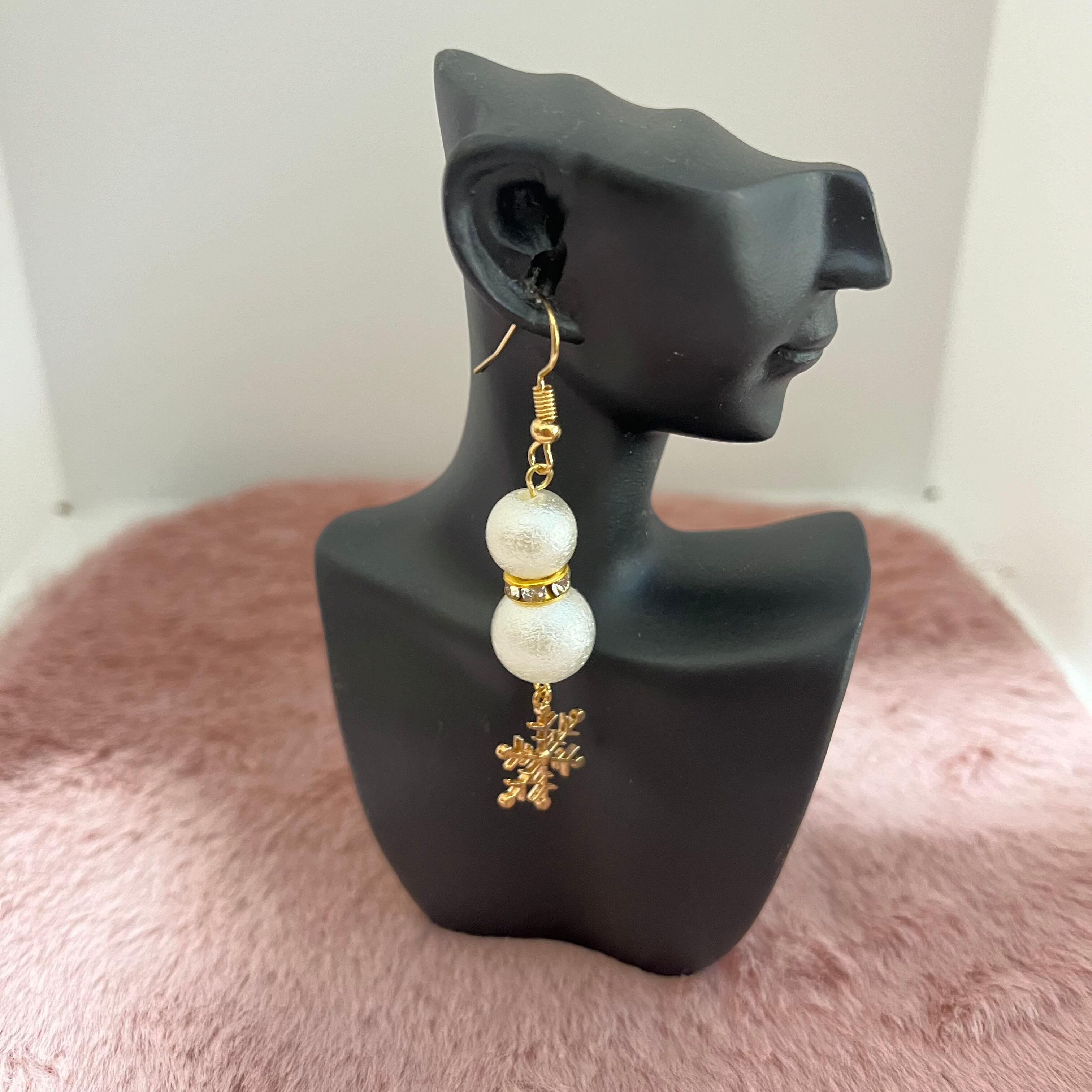 淡水パールの雪だるま×結晶ユラユラピアス/イヤリング